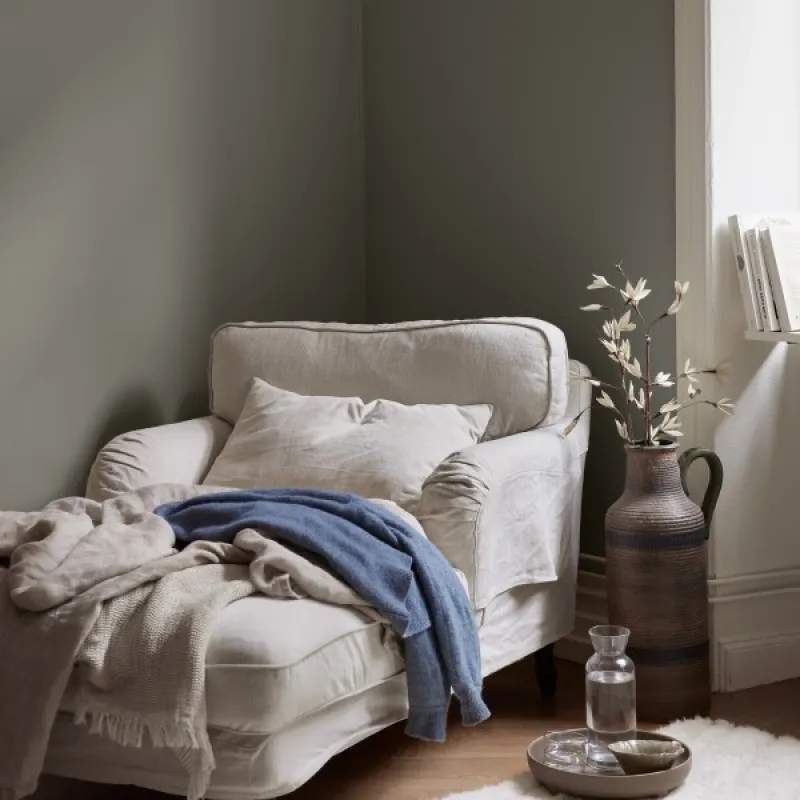 Citronmeliss 835 er en traditionel grøn farve, der skaber en behagelig atmosfære i dit hjem. Brug den i soveværelset, entréen og køkkenet til at skabe en rolig og afslappet atmosfære. Det er en farve af høj kvalitet, der giver et holdbart og smukt resultat. Citronmeliss 835 gør dit hjem til en oase af ro og harmoni.