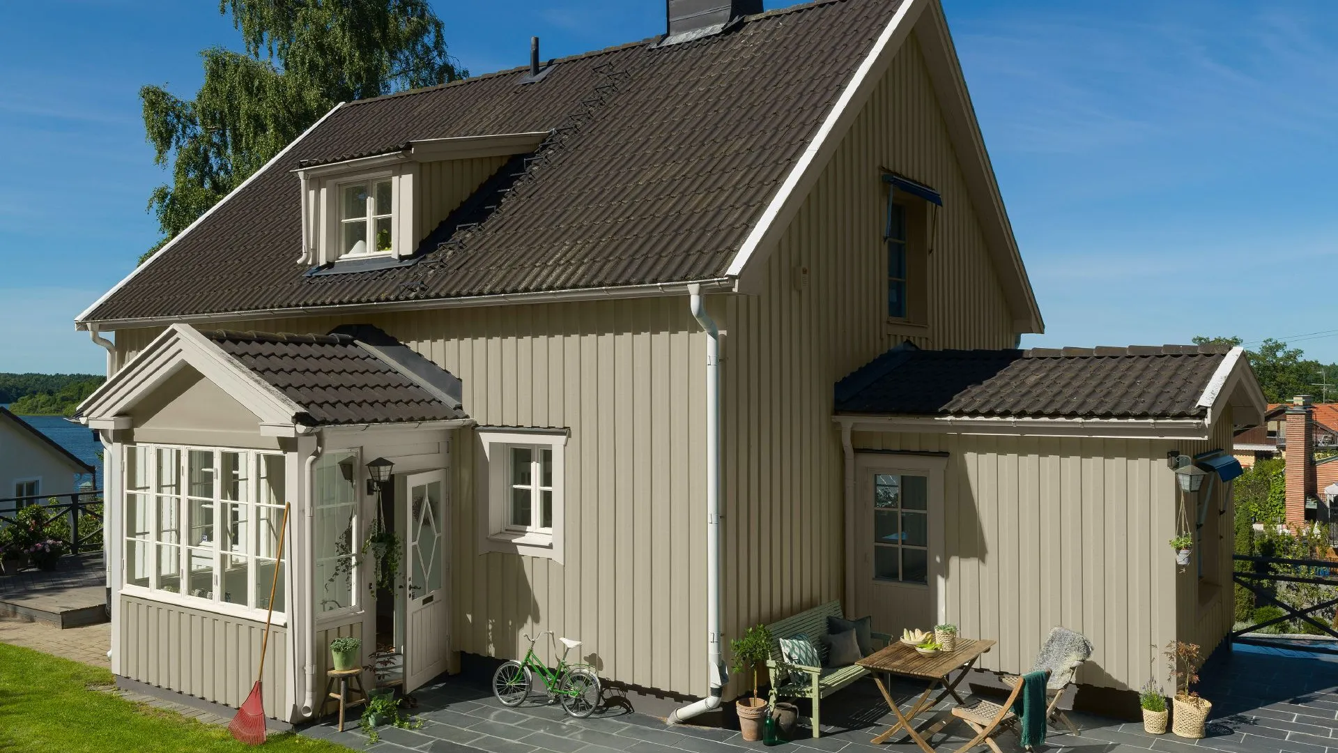 Jordnært og naturligt – facader i brun og beige smelter ofte godt ind i omgivelserne.