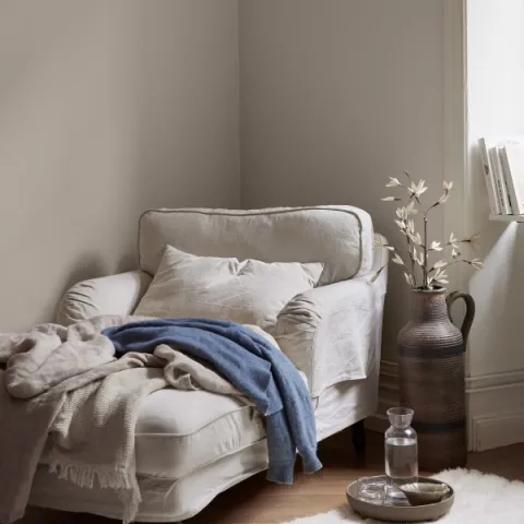 Eftersom knopperne var så hurtige at male, tog vi endda køkkenlågerne med, da vi var i gang med penslen. Vi malede knopper og låger i nuancen Sisal 559.
