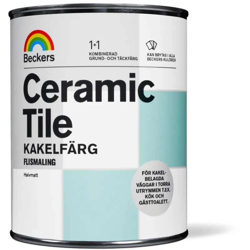 Beckers Ceramic Tile er en halvmat flisemaling til keramiske vægfliser i tørre rum f.eks. køkken og gæstetoilet. Malingen har en rigtig god vedhæftning og kræver ingen grunder. Kan tones i Beckers farver.