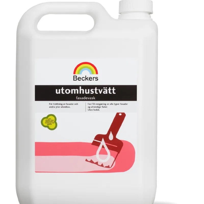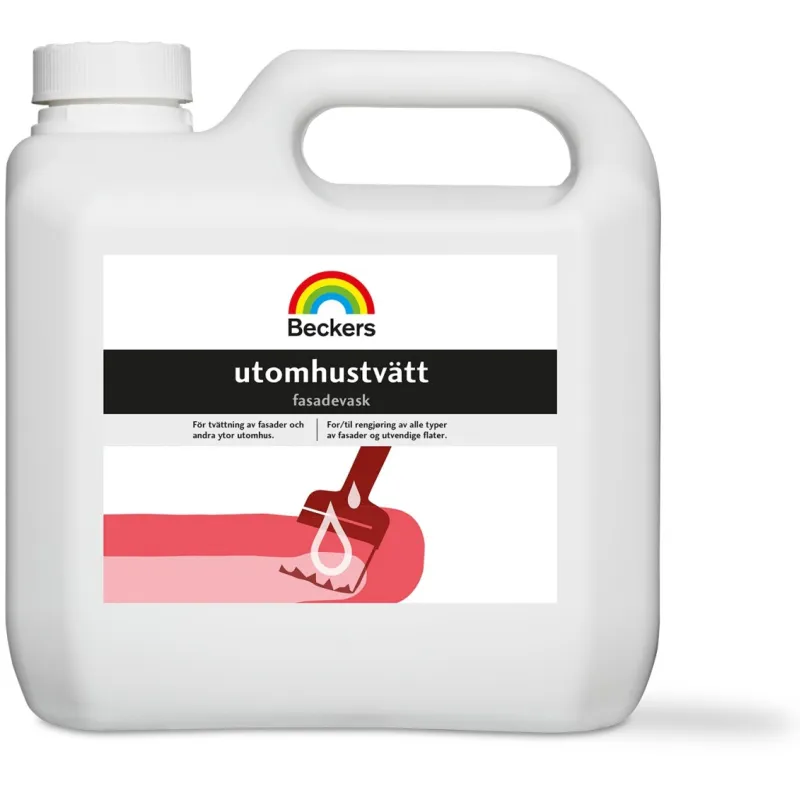 Inden du maler facaden, skal du huske først at vaske den. Beckers Facadevask er et effektivt rengøringsmiddel, som løsner fedt, smuds, sod samt lettere angreb af alger og mug/svamp. Facadesæben kan anvendes på alle overflader udendørs. Facadevask kan anvendes til både kontinuerlig vedligeholdelse og til rengøring før maling. Ved vedligeholdelsesrengøring bliver overfladerne både rene og beholder deres glans. Ved rengøring før maling matteres overfladen for bedste vedhæftning. Hvis huset er rent, holder malingen længere. Sørg for, at din facade er ordentligt passet på med Beckers Facadevask.