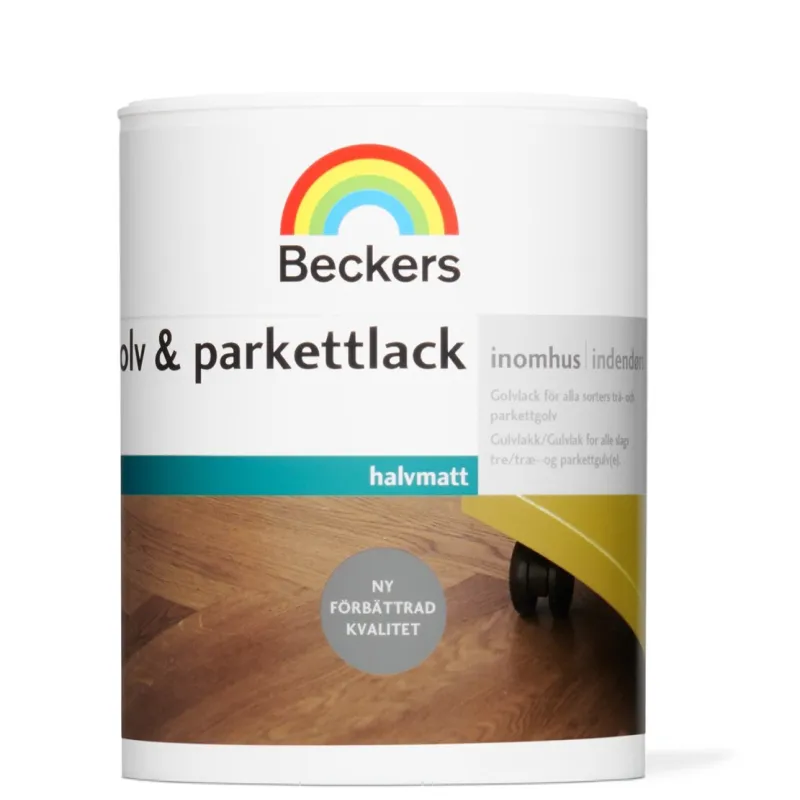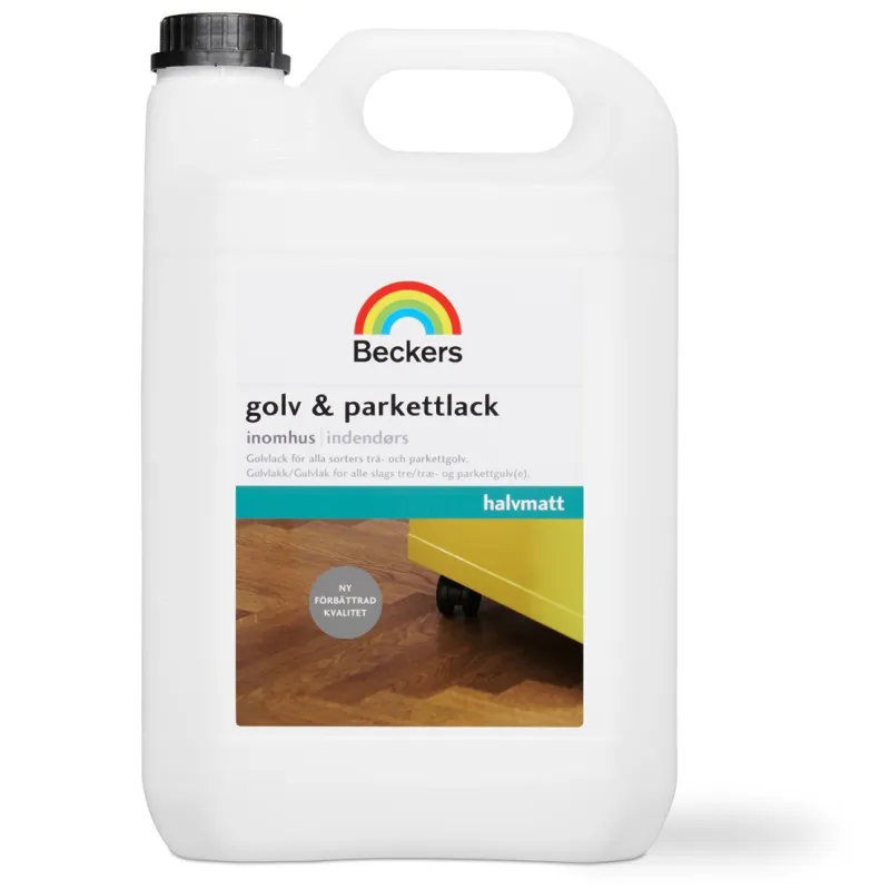 Beckers Gulv & Parketlak Halvmat er en vandfortyndbar klarlak, som anvendes til behandling af alle slags træ og parketgulve indendørs. Den halvmatte klarlak anvendes også på gulve, som tidligere er malet med Gulvmaling Plus. Med Beckers Gulv & Parketlak Halvmat beskytter du træet og får en slidstærk og vaskbar overflade, som holder sig flot længere.