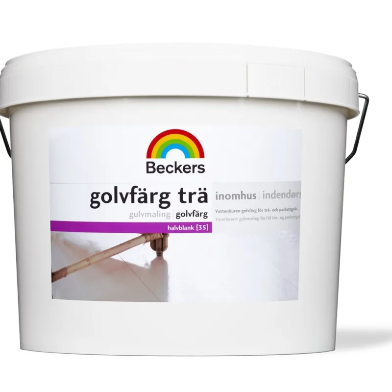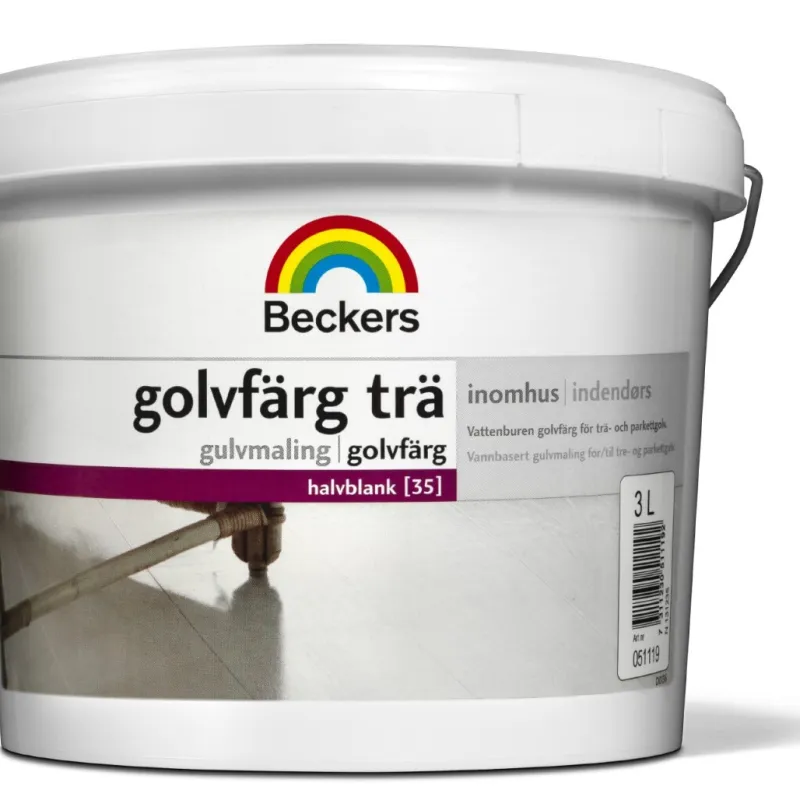 Nymaling af umalet trægulv: Rengør for snavs og støv. Eventuelle træfibre, der har rejst sig efter rengøring, slibes med fint sandpapir. Dæk knaster med Beckers Knastlak. Grund med Beckers Panelgrund for at mindske risiko for misfarvning af harpiks. Mindst 1 lag Grunder er nødvendig, men det kan være nødvendigt med flere lag, afhængigt af underlagets tilstand. Lad Grunderen tørre 16 timer. Maling af tidligere malede gulv eller lakerede trægulv: Sprøjt Beckers Malervask på og lad skummet virke nogle minutter, og tør derefter overfladen af med en fugtig mikrofiberklud. Blanke overflader matslibes med fint sandpapir. Gulvet får sin fulde slidstyrke og kan bruges efter 5 døgn..
