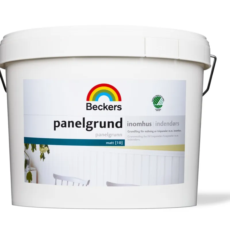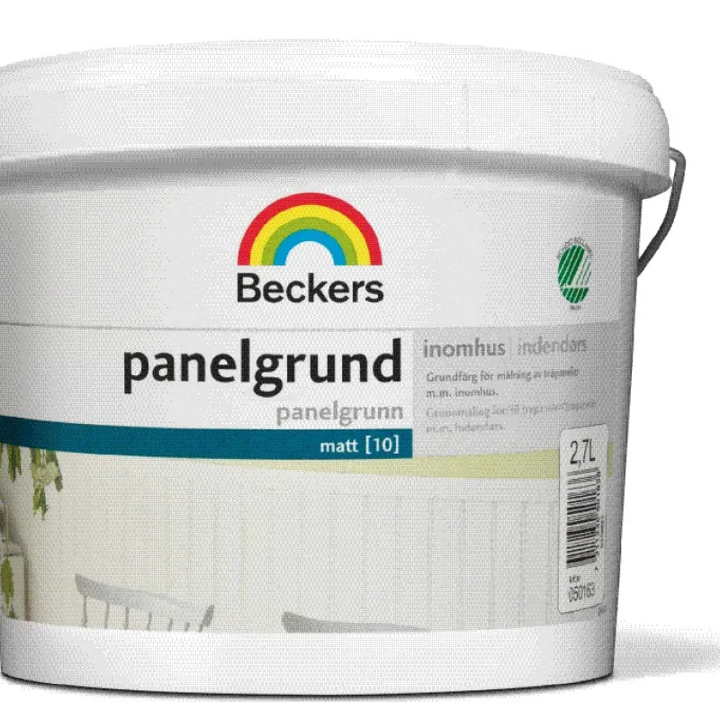 Beckers Panelgrund er en vandfortyndbar grund- og dækmaling til træpaneler indendørs. Panelgrund dækker effektivt knaster og gulnet træ mod gennemslag. Beckers Panelgrund virker godt mod nikotin, sod og vandskadede træoverflader. Panelgrund er overmalbar med de fleste af Beckers produkter til væg, loft og træværk indendørs. Knastdækkende, grunder og slutmaling i ét.