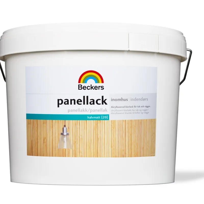 Beckers Panellak er en halvmat klarlak forstærket med UV-beskyttelse, som anvendes til lakering af væg og loftpaneler indendørs. Kan også anvendes til lakering af papirtapeter og som grundlak på møbler og gulve. Fordelene ved at påføre Beckers Panellak er mange; bl.a. forsinker lakken træets gulning, giver en flot filmoverflade og er let at holde ren.