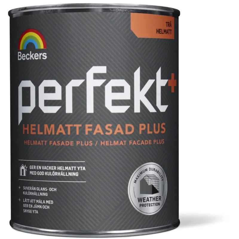 Perfekt Helmat Facade Plus har en suveræn farvebestandighed og giver træet den bedst mulige beskyttelse. Anvendt sammen med Beckers Primex Grundolie Træ Plus samt Primex Trægrund Plus forhindres snavs og skimmel på den malede overflade. Produktet har en god udflydningsevne, tørrer hurtigt og kan påføres de fleste tidligere malede overflader.